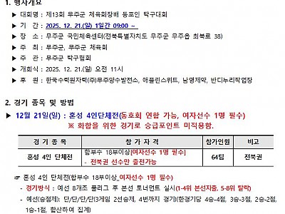 2025년 무주군체육회장배 탁구대회 접수 및 진행 안내(뉴티티플레이)