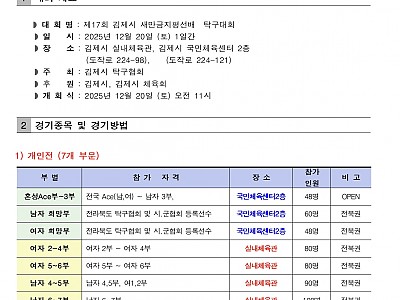 제17회 김제시 새만금지평선배 탁구대회 요강