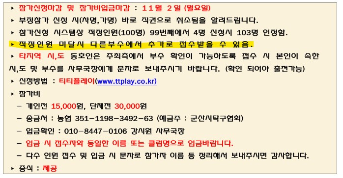 요강에 명시된 바와 같이 일반부 개인전 및 단체전 추가 접수를 실시합니다.