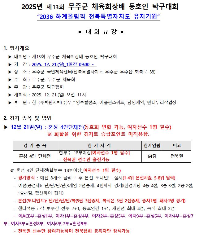 아울러 12.20(토) - 21(일) 제17회 김제시 새만금 지평선배 탁구대회가 개최 예정으로,