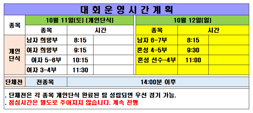 제5회 임실 N치즈배 전국동호인탁구대회 일정 및 대진표 안내
