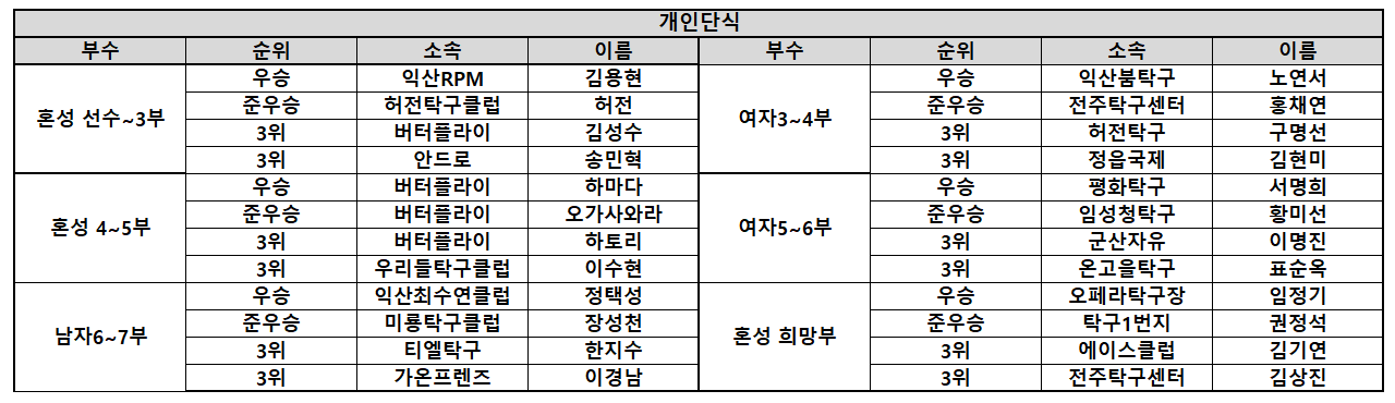 2025 군산시 새만금배 전국 동호인탁구대회 경기결과