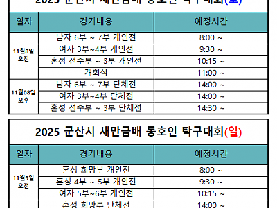 2025 군산시 새만금배 전국 동호인 탁구대회 경기시간