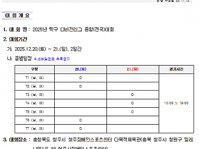 2025년 탁구 디비전리그 종합(전국)대회 요강및 참가선수안내